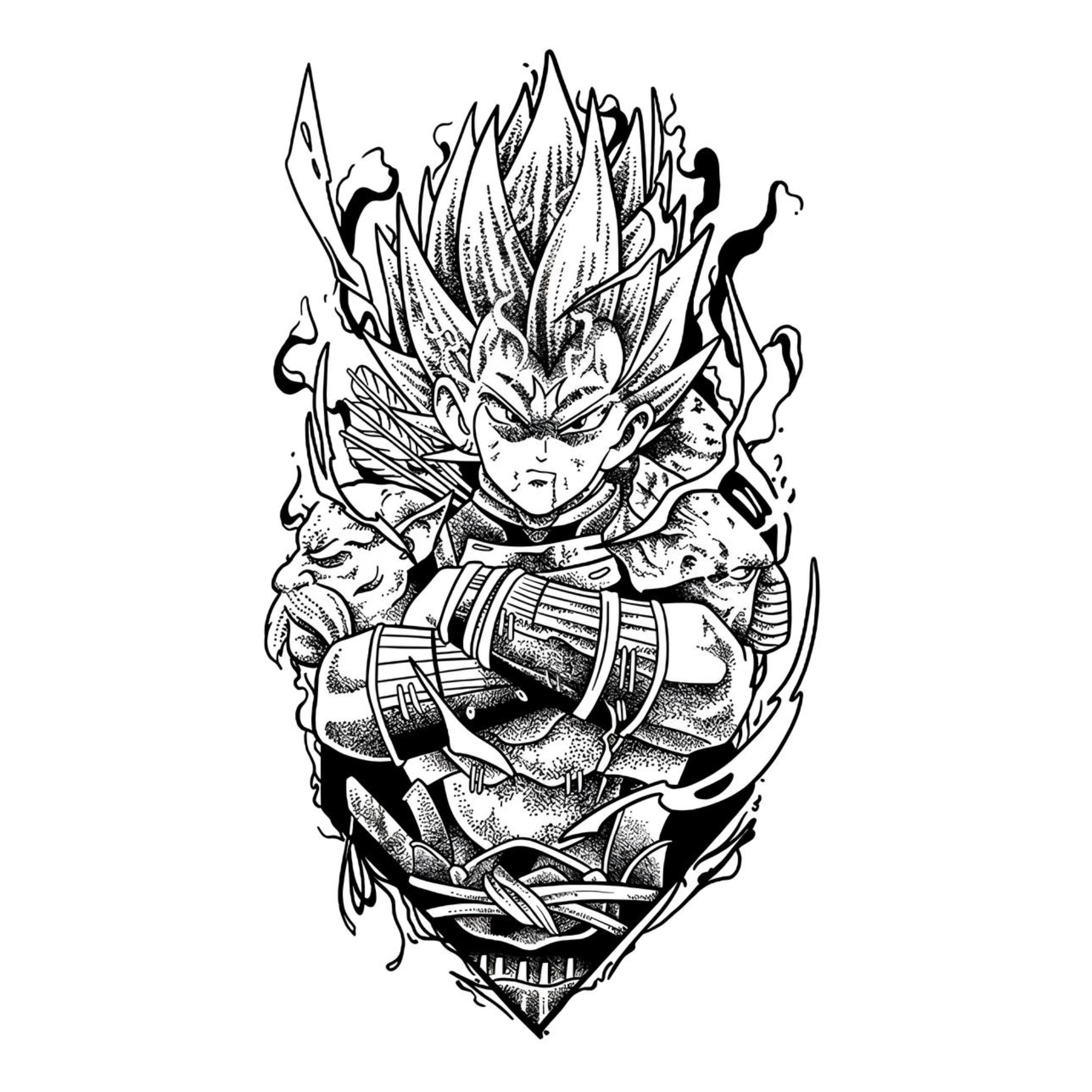 En stor Manga-inspirerad semipermanent tatuering, perfekt för armen eller vaden. Riktigt maffig och detaljerad.