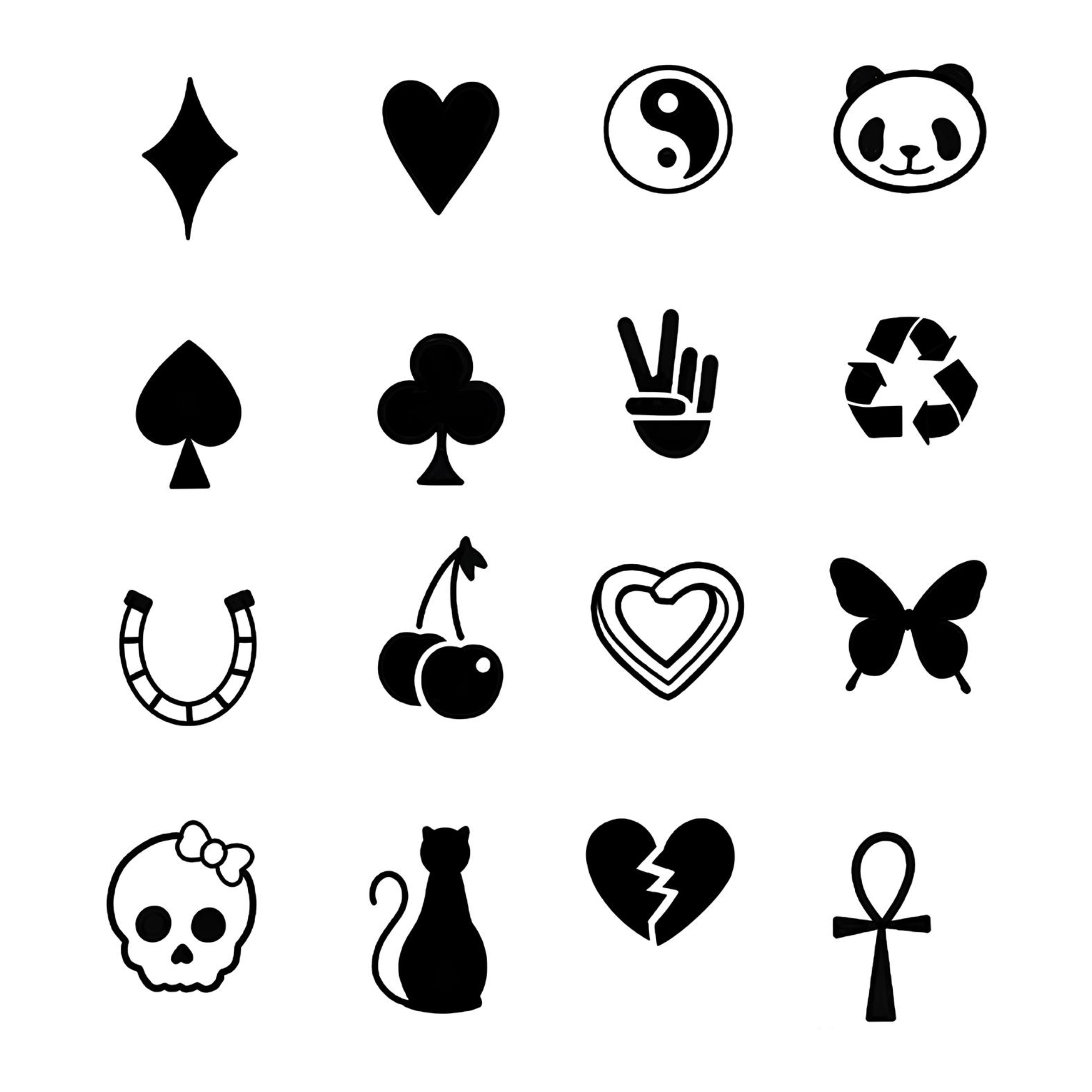 Arket innehåller 16 tatueringar. Varje enskild tatuering är ca 1-2 cm stor.