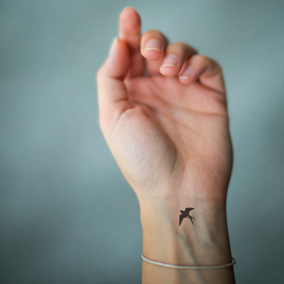 Ett ark med små och diskreta semipermanenta tatueringar, perfekta för händer eller underarm. Arkets storlek är 11X8 cm. Tatueringarna håller i upp till två veckor på kroppen och 3-4 dagar på händer och fingrar. Måste säga att vi älskar den lilla svalan!